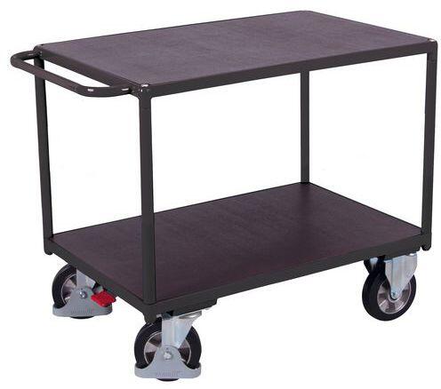 Nagy teherbírású, két polcos polcos kocsik, nagy rakományok szállítására alkalmas raktárakba. A polcok vízálló, csúszásmentes rétegelt lemezből készülnek. A mobilitást négy gördülő golyóscsapágyas kerék biztosítja, amelyek közül kettő fix, kettő pedig Easy Stop fékekkel és védőburkolatokkal forgatható.